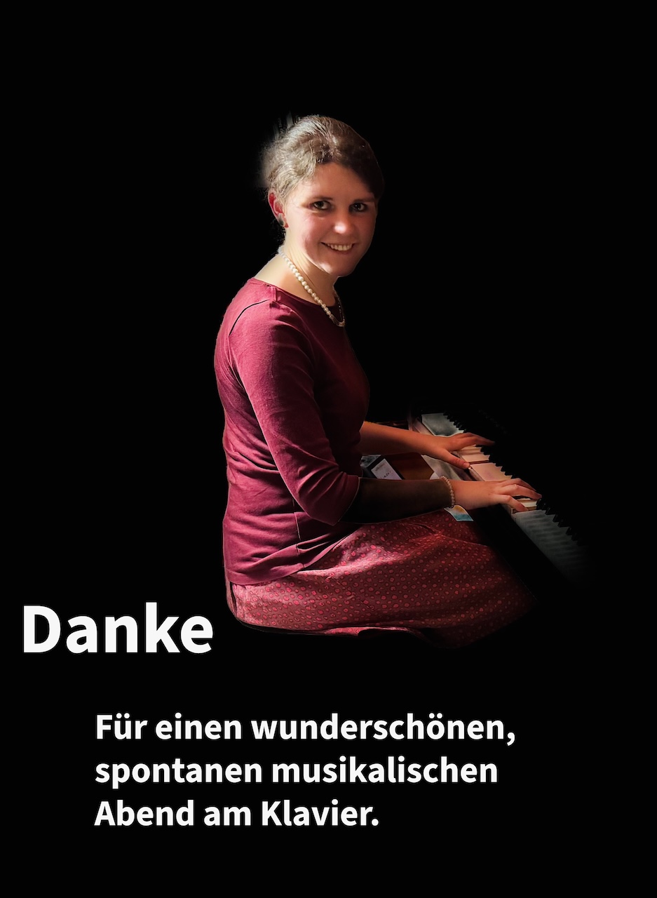 Im Rahmen des berufsbegleitenden Studiums der Kunsttherapie/Sozialkunst (B.A.) konnte sie die erworbenen zwischenmenschlichen Kenntnisse mit den künstlerischen Fähigkeiten verbinden und entdeckte die Musik auf neue Weise in der freien Improvisation am Klavier. So verbinden sich eine hochsensible zwischenmenschliche Schwingungsfähigkeit und ein geschulter künstlerischer Ausdruck mit einer feinen musikalischen Gabe.