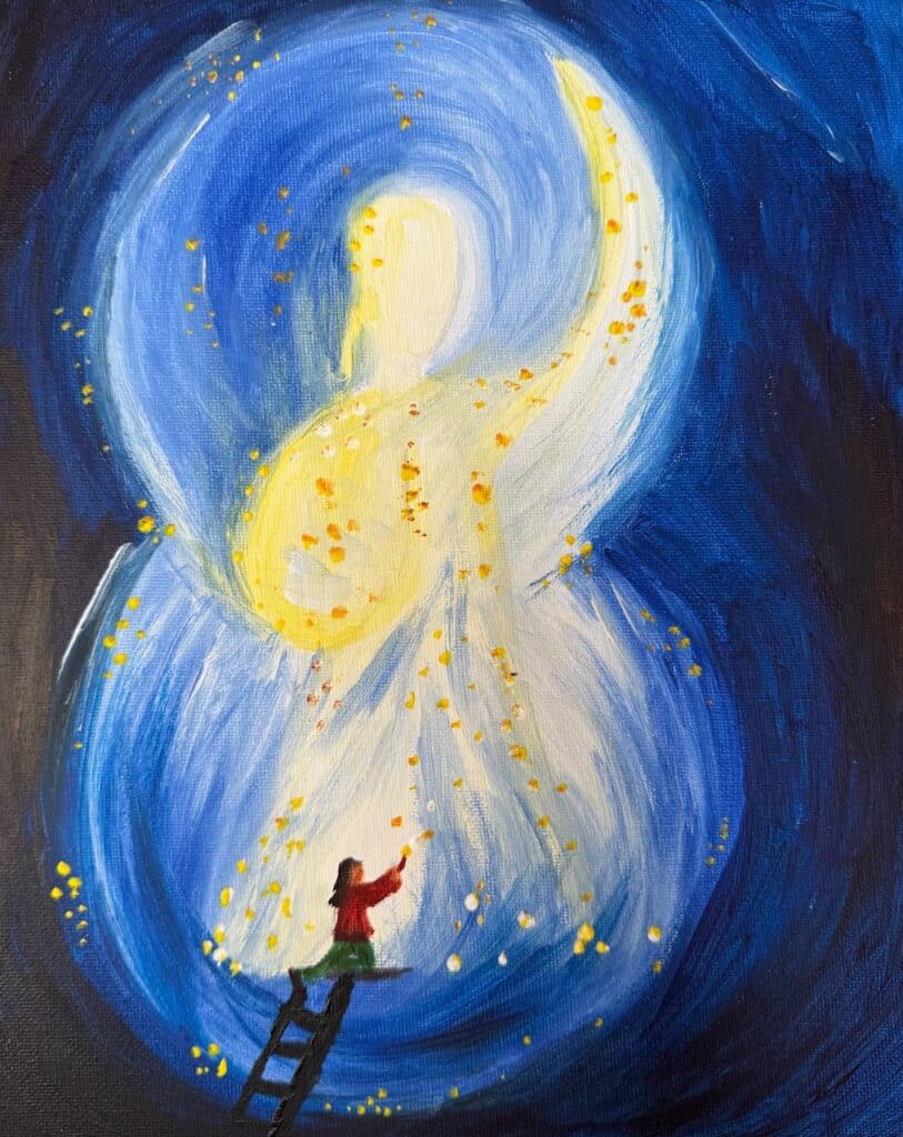Sie wirkt aus der Gabe des Herzens und verbindet Licht und Finsternis miteinander, sodass viele Farben leuchten.