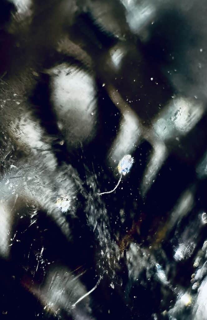 Hinweis: Die Fotografien sind Ausschnitte aus einer Alltagssituation: Bürotisch, Blatt Papier, Wasserglas und Sonnenlicht.